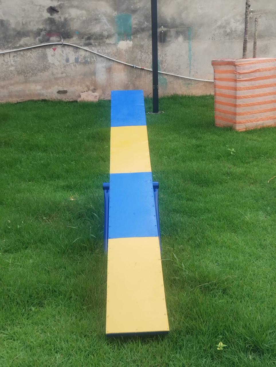 Fabricado em tubo de aço 25 mm com acabamento em pintura eletrostática nas estruturas, e placa ecológica com pintura texturizada na área pisante.