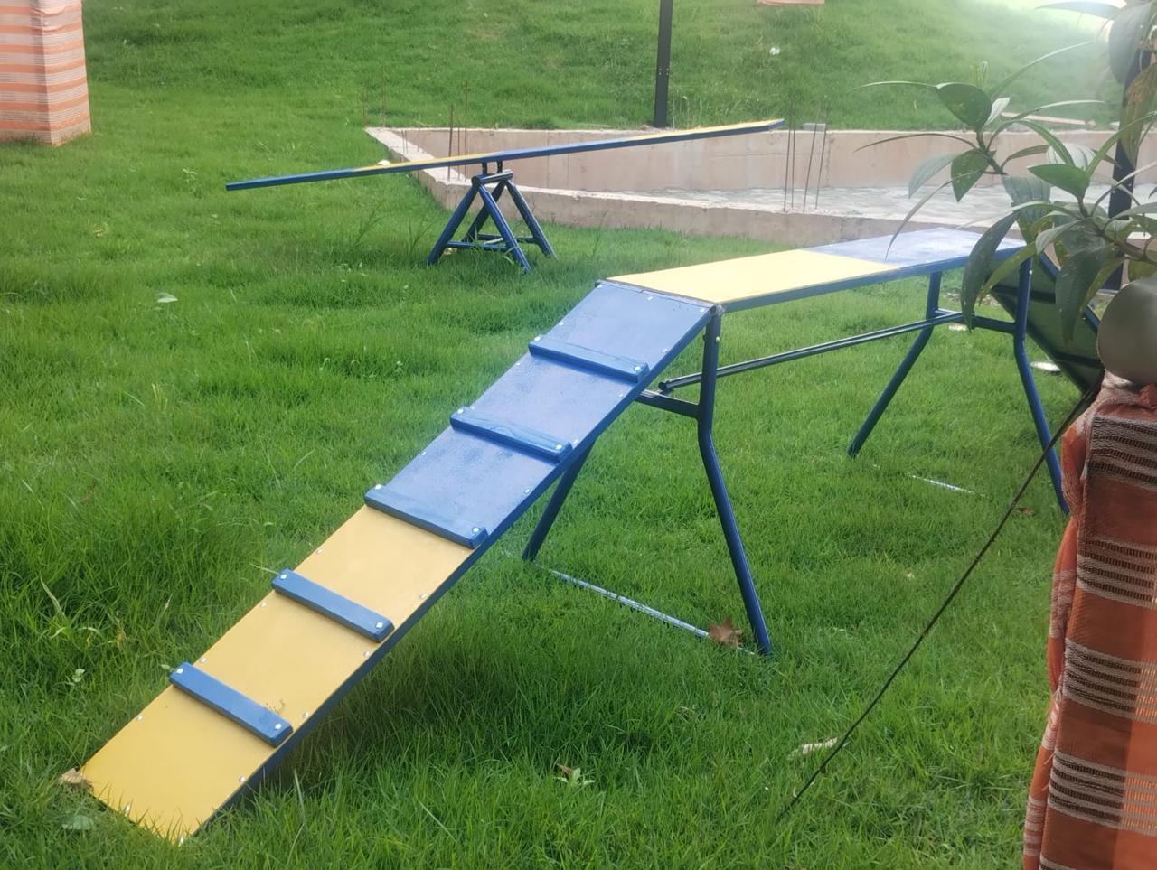 Fabricado em tubo de aço 25 mm com acabamento em pintura eletrostática nas estruturas, e placa ecológica com pintura texturizada na área pisante.